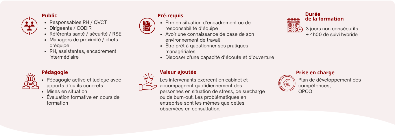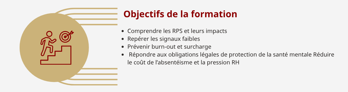 Elle permet aux managers de mieux comprendre les mécanismes de la santé mentale, de repérer les signaux faibles et d’adopter une posture adaptée face aux situations sensibles, tout en contribuant à une culture de prévention durable au sein de l’entreprise.